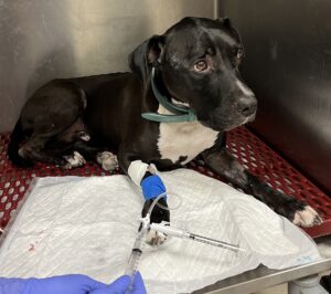 Paciente canino diagnosticado de linfoma multicéntrico recibiendo quimioterapia intravenosa